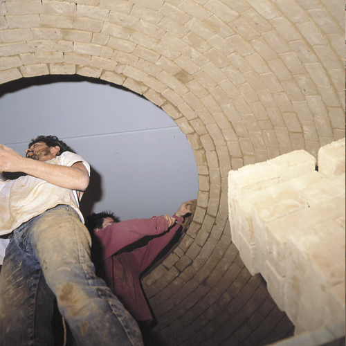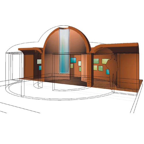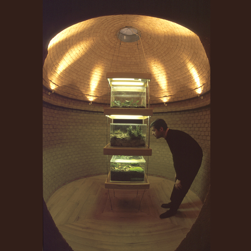 un mur rond surmonté d’une coupole et entouré d’une voûte et d’une paroi perforée permet l’observation des insectes.