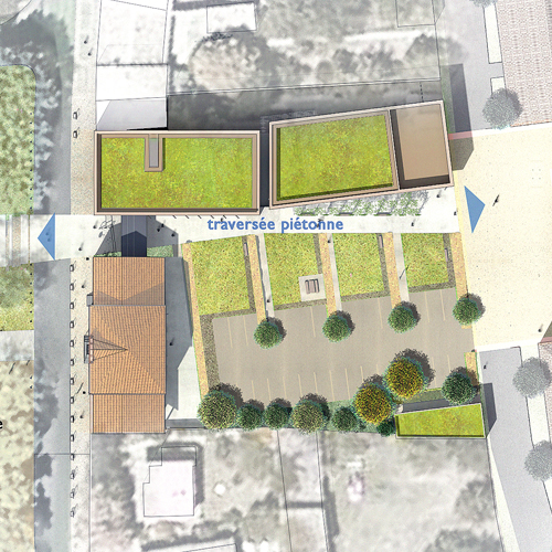 L’organisation spatiale, guidée par la recherche d’une cohérence urbaine, ne doit pas négliger les contraintes liées au confort des utilisateurs ; les orientations des façades et la fluidité des circulations intérieures donnent la qualité d’usage du bâtiment. La compacité a été obtenue par la fonctionnalité et la rigueur du plan et par le choix de façades linéaires, sans redent ; la simplicité de l’ensemble transparait dans la lecture des façades, dont les matières se fondent avec les teintes de l’environnement. La couverture végétale en toiture terrasse permet de palier l’imperméabilisation des sols due aux surfaces construites tout en apportant un bon écran à la surchauffe estivale.