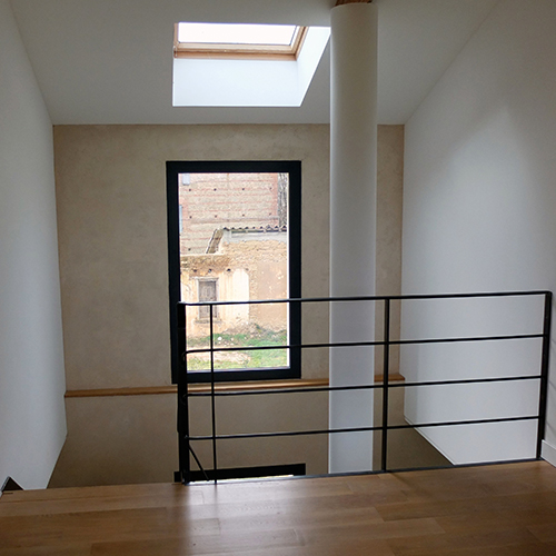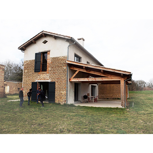 Maison L à Couffouleux • Maitrise d’ouvrage privée • Projet livré en 2013 • Lieu : 81800 Couffouleux • 288 m2 • Montant des travaux : 270 000 € TTC Aménagement d’une maison individuelle partiellement reconstruite. Enduits à la chaux, bardage bois, isolation du toit en métisse et ouate de cellulose, chaudière à granulés, plancher chauffant et ECS solaire.